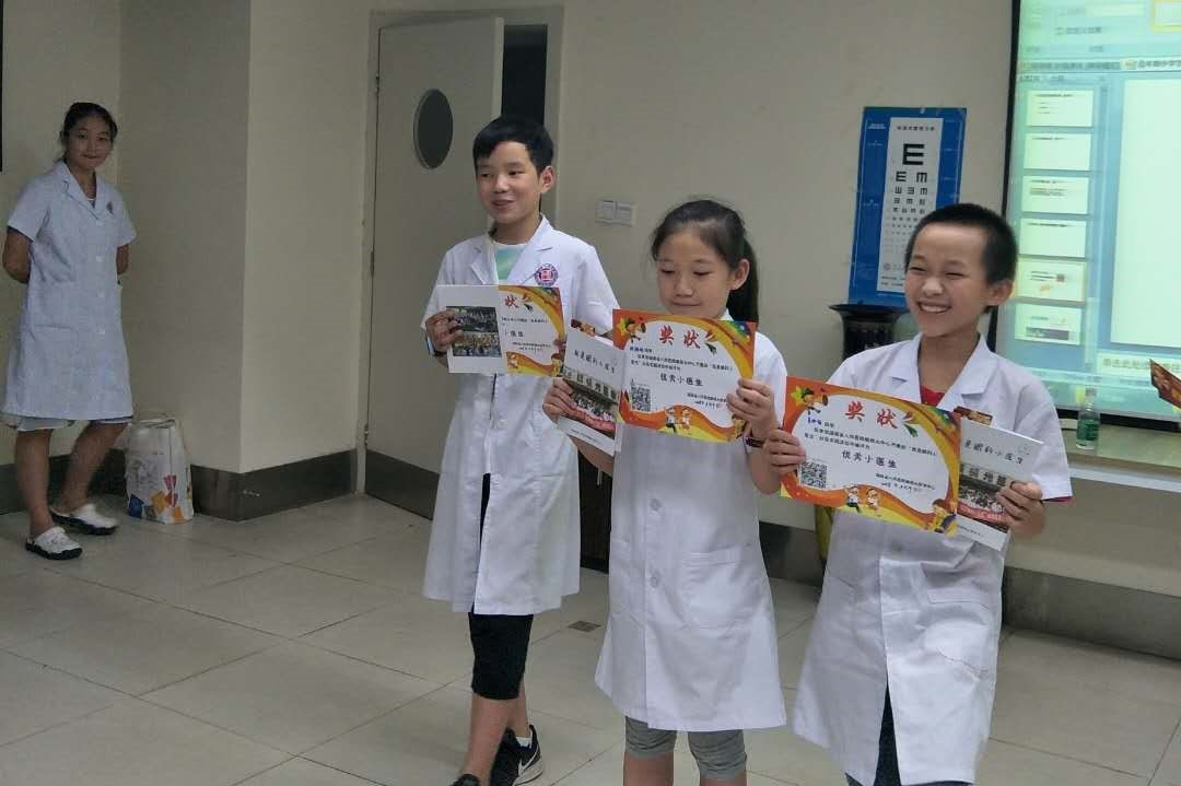 最后,各位小医生们进行了职业体验,学会了灯箱视力检测、参观了视觉训练室和肉视训练室、测量了主导眼,知道了自己的优势眼。在自己动手操作的时候,同学们体会到了当医生真不容易,要学好扎实的医学知识,还要有超强的操作能力,才能真正的为病人解决问题。通过这次活动,同学们学到了很多爱眼护眼的知识,如书写的正确姿势、要多进行户外活动、用眼时对环境和光线有哪些要求、吃哪些食物有益于眼睛健康等等。对于没有任何视力问题的小朋友来说,要注意用眼卫生,做好近视的预防,对于眼睛有散光、近视等问题的小朋友来说,要及时去正规医院进行专业的检查和治疗,不要耽误最佳的治疗时间。希望同学们都爱护好心灵的窗户,拥有一双明亮的眼睛看世界!
