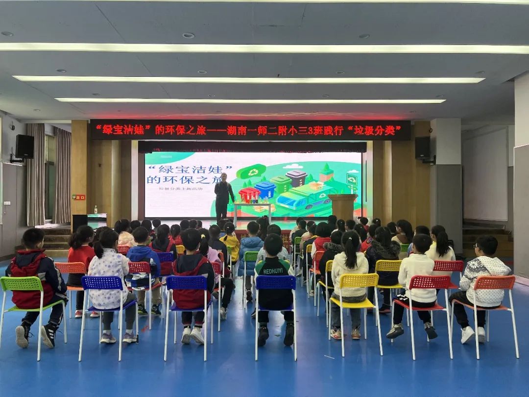 日常生活中会产生什么垃圾?些垃圾最后去了哪呢?为什么要进行垃圾分类?又怎样进行垃圾分类?带着一连串的问号,环保小队的队员们邀请了长沙市科技协会志愿者小空老师走进课堂,开启了“绿宝洁娃”的环保之旅。小空老师用幽默风趣的语言给孩子们讲述了生动真实的科普故事,充分激发了大家对垃圾分类和垃圾处理知识的兴趣。