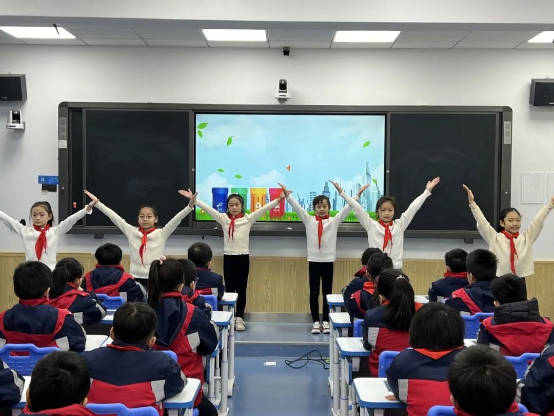 在主题中队会上,队员们汇报了小队活动成果,表演了幽默风趣又有教育意义的垃圾分类儿童剧,节目中各种各样的“小垃圾们”欢欢喜喜地跳了出来,分别找到了属于自己的“家”。简短的队会课,不仅让同学们轻松记住了垃圾如何分类、如何循环利用、如何变废为宝,还将课上所学的环保知识带出了校园,带进了千家万户。