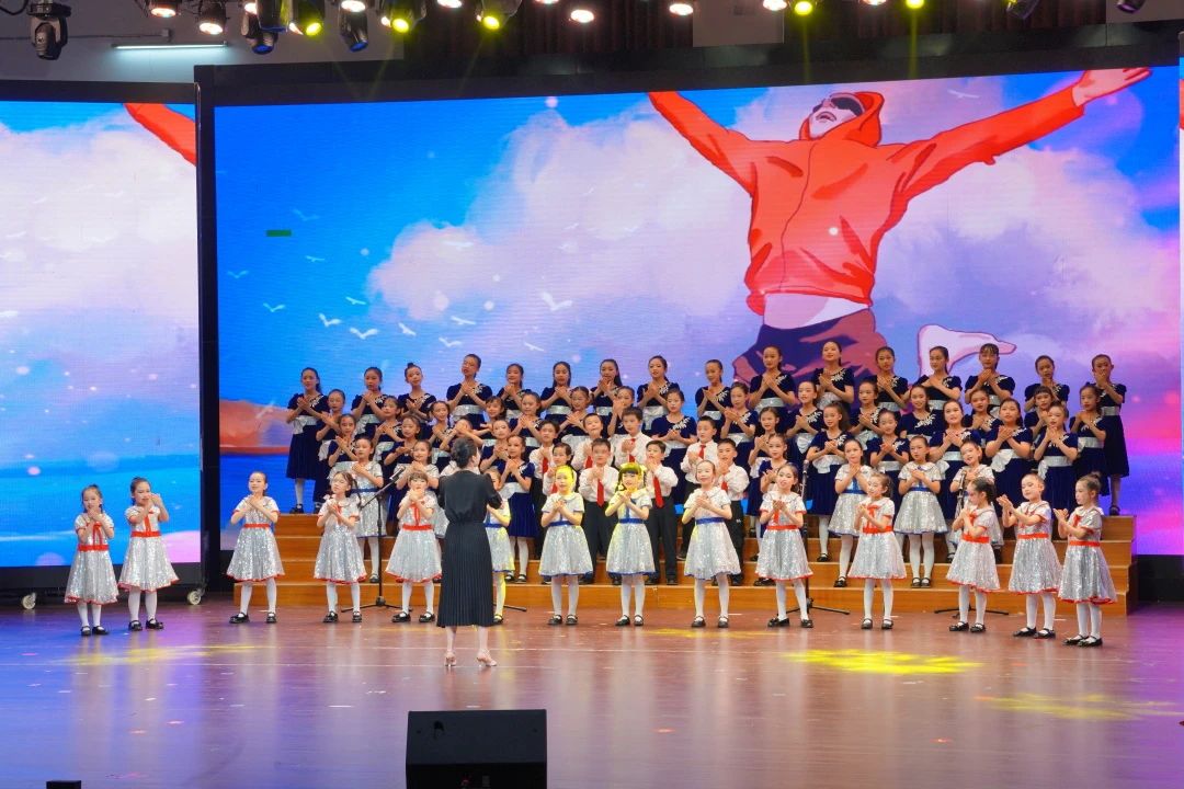 明亮的微笑,嘹亮的嗓音,挺拔的身姿,孩子们用朝气蓬勃的表演在舞台上定格着最自信的模样。瞧,梦想正在前方照亮前进的道路,哪怕风雨兼程也义无反顾,新时代的少年们正在中国红色文化的滋养下蓄势待发、砥砺前行。