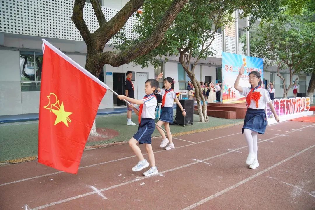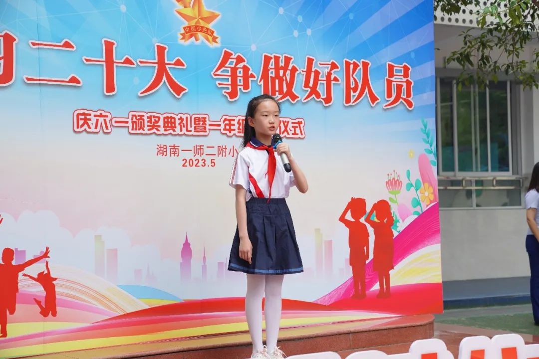 5月31日上午,值此“六一”国际儿童节来临之际,湖南一师二附小全体师生怀着喜悦的心情欢聚一堂,共同庆祝“学习二十大,争做好队员”一年级入队仪式。