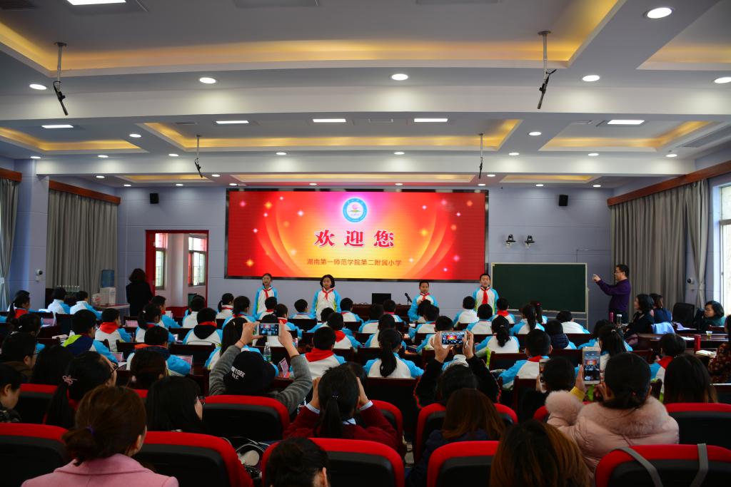 11月27日,初冬的一师二附小校园艳阳高照,不是春天胜似春天。学校五楼多媒体教室内,第一师范学院文学与新闻传播学院(以下简称文传院)国培班学员们(甘肃省三科教师培训项目小学语文骨干教师、湖南新化县乡村小学全科教师们),开福区城区一片联片教研学校的语文教师们,以及我校语文教师共200多人济济于一堂。原来,由文传院主办,我校承办的语文课堂教学研讨活动今天在我校如期举行。真可谓:相聚二附小,共研语文课堂,同启拔节之旅。