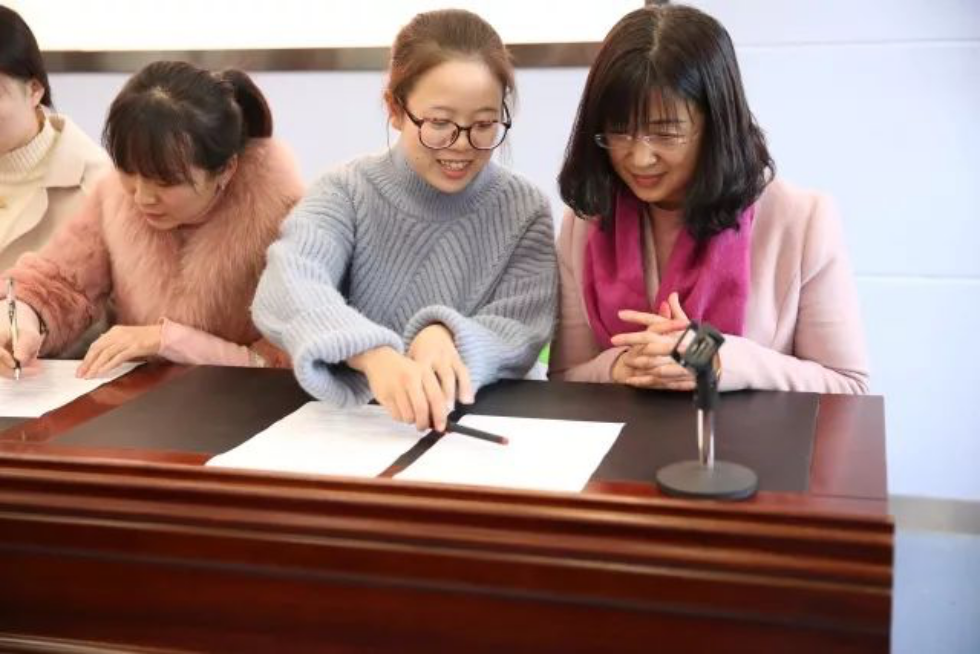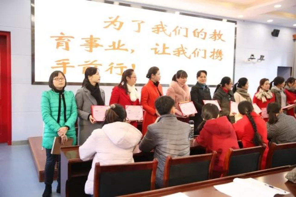 接着,章校长为导师们颁发了聘书和导师专用听课本;导师和受导教师慎重地签订了协议书,受导教师向导师行庄严的拜师礼,在大家的热烈掌声中,正式结成师徒。