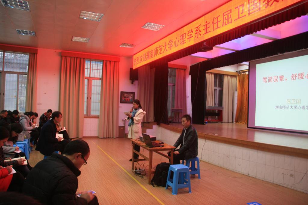 3月13日下午,我校大礼堂内,受邀为我校全体教师讲座的湖南师范大学心理学系主任屈卫国教授就为我们揭示了答案。他用简单而深刻的故事、生活事例,从心理学研究的角度,为老师们分析了为什么常常感觉不到幸福的原因,提供了舒缓心理压力的办法,鼓励大家创造属于自己的幸福。老师们则从他简单的故事里,幽默的讲述中,感受到了幸福其实很简单:悦纳自己,简单生活,建立亲密的人际关系,学会敬畏……大家也明白了,在简单的工作中,首先要勇于接受自己的不足,不断发展自我,提升职业的使命感,成就最好的自己,才会感到幸福。