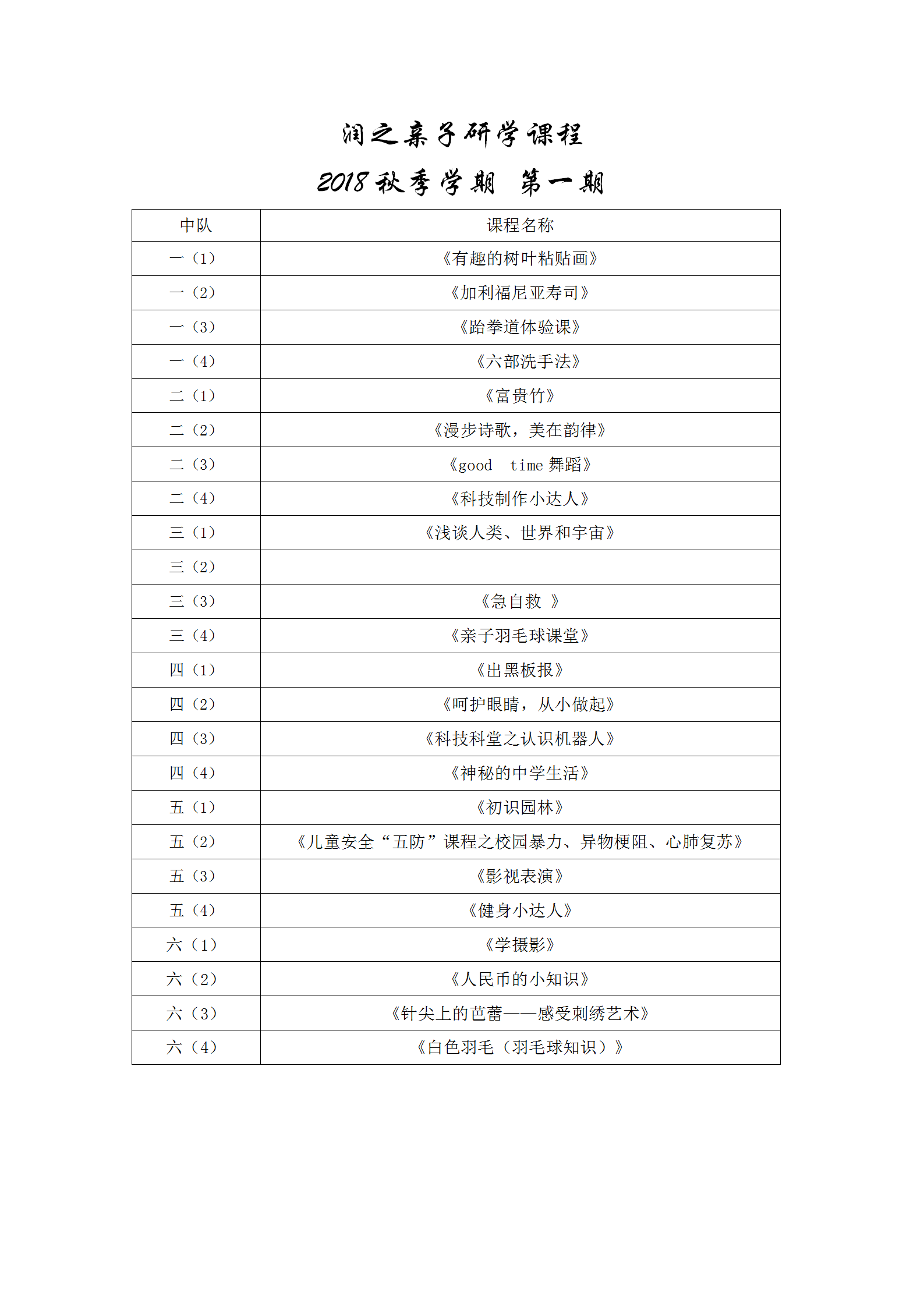 润之亲子研学课程2017秋第一期