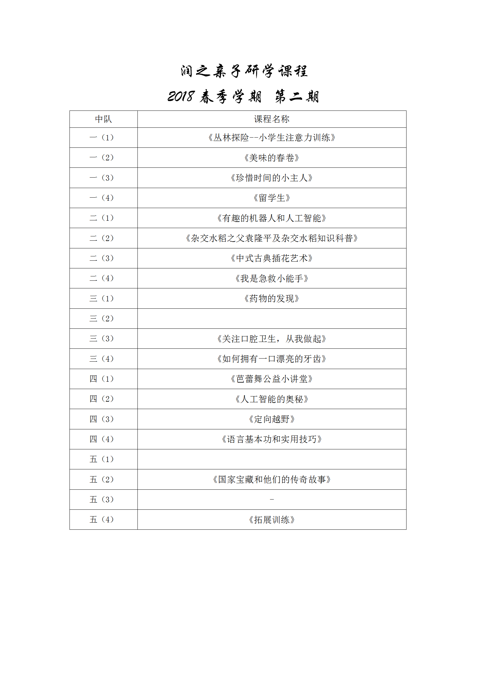 润之亲子研学课程2018春第二期