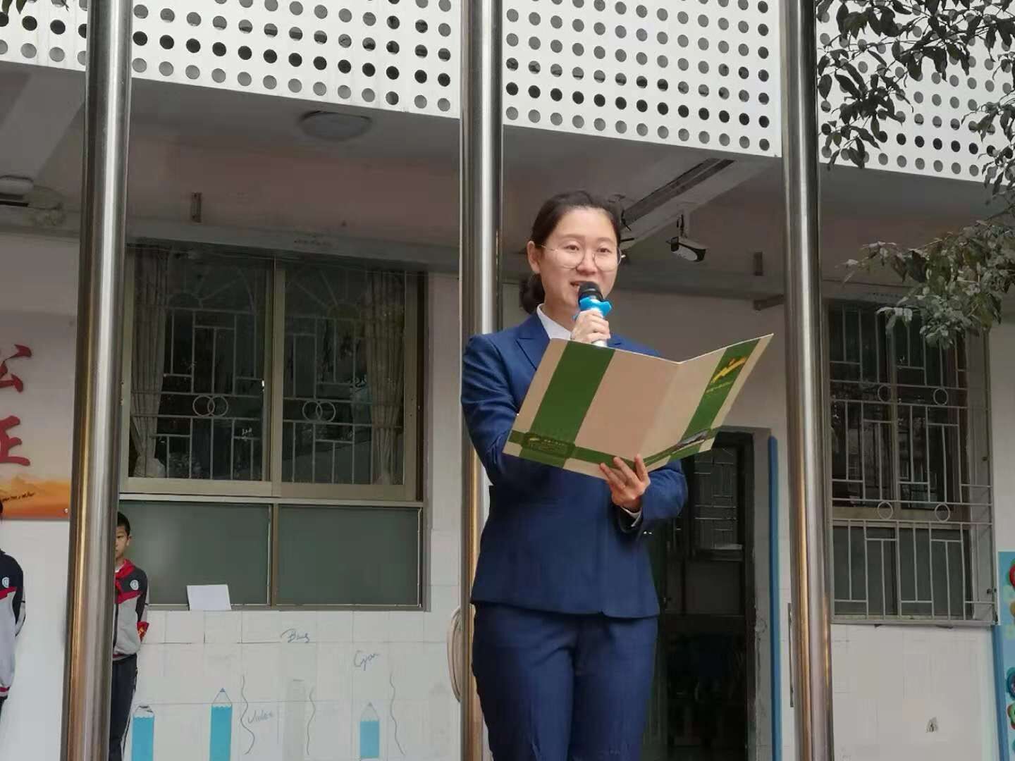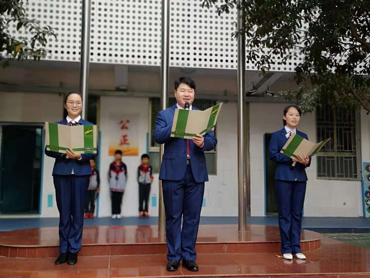 深秋微凉的风轻抚过校园的棵棵大树时,一师二附小的全体师生又齐聚操场,迎接新的一周。瞧,学校大队部精心策划的国旗下微活动又开始了。