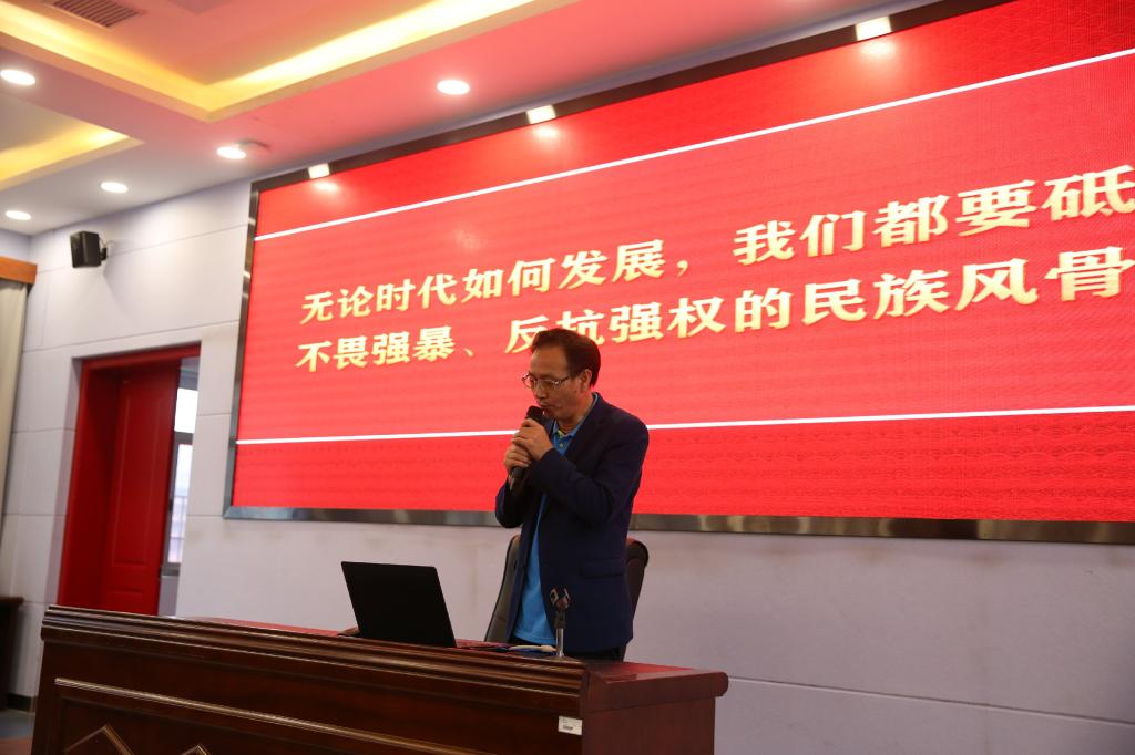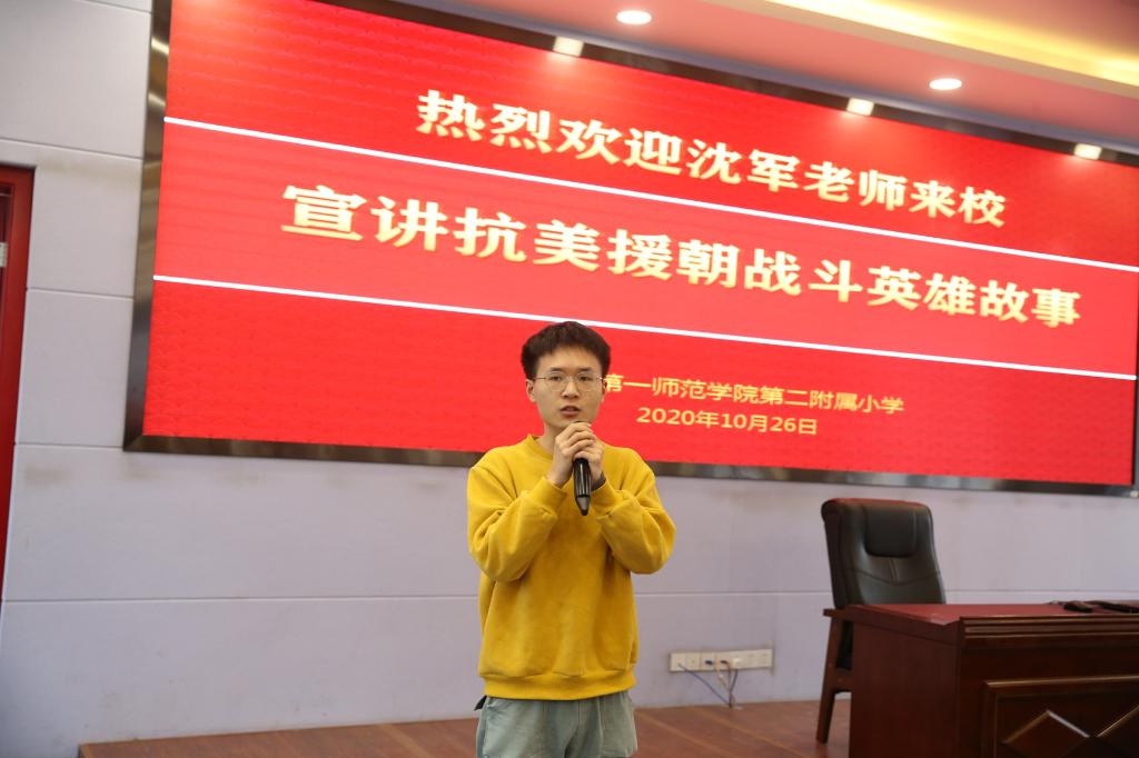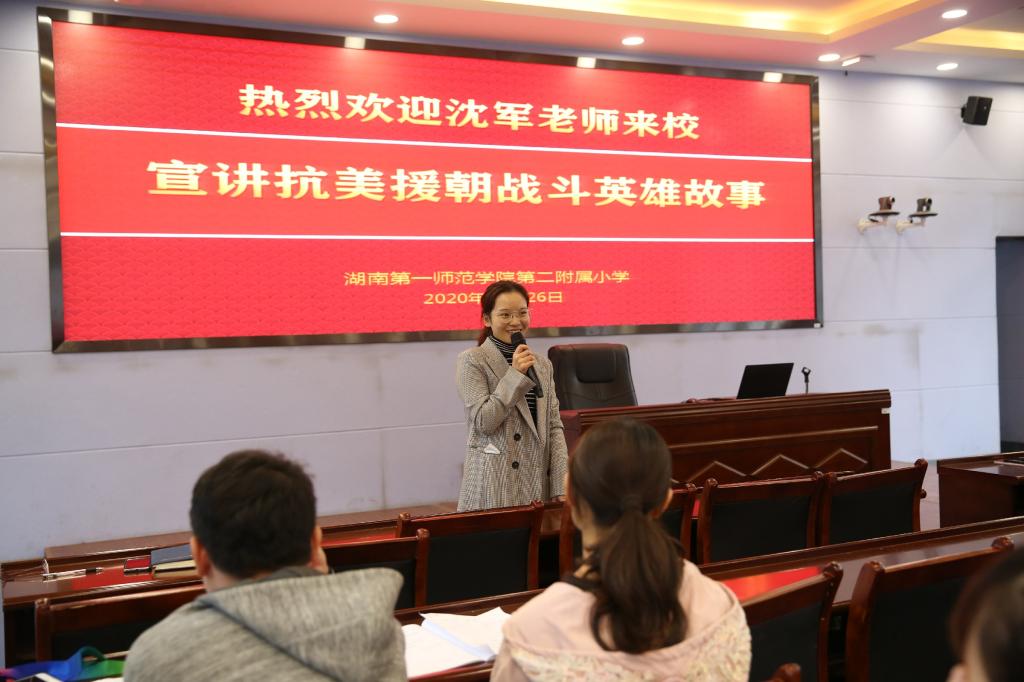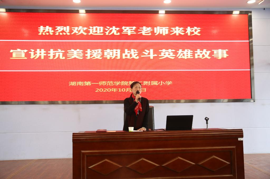 为纪念中国人民志愿军抗美援朝出国作战70周年,铭记抗美援朝的伟大胜利,捍卫来之不易的和平正义,永续传承、发扬伟大的抗美援朝精神,10月26日,我校特邀请抗美援朝志愿军战士、退休教师沈军来校宣讲抗美援朝的战斗英雄故事,全校教师参与此次活动。